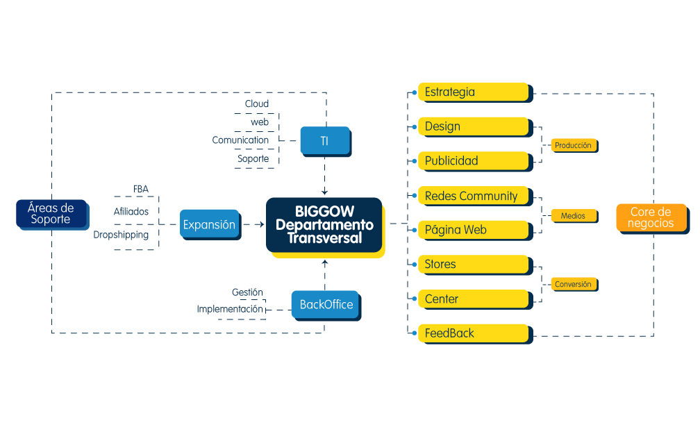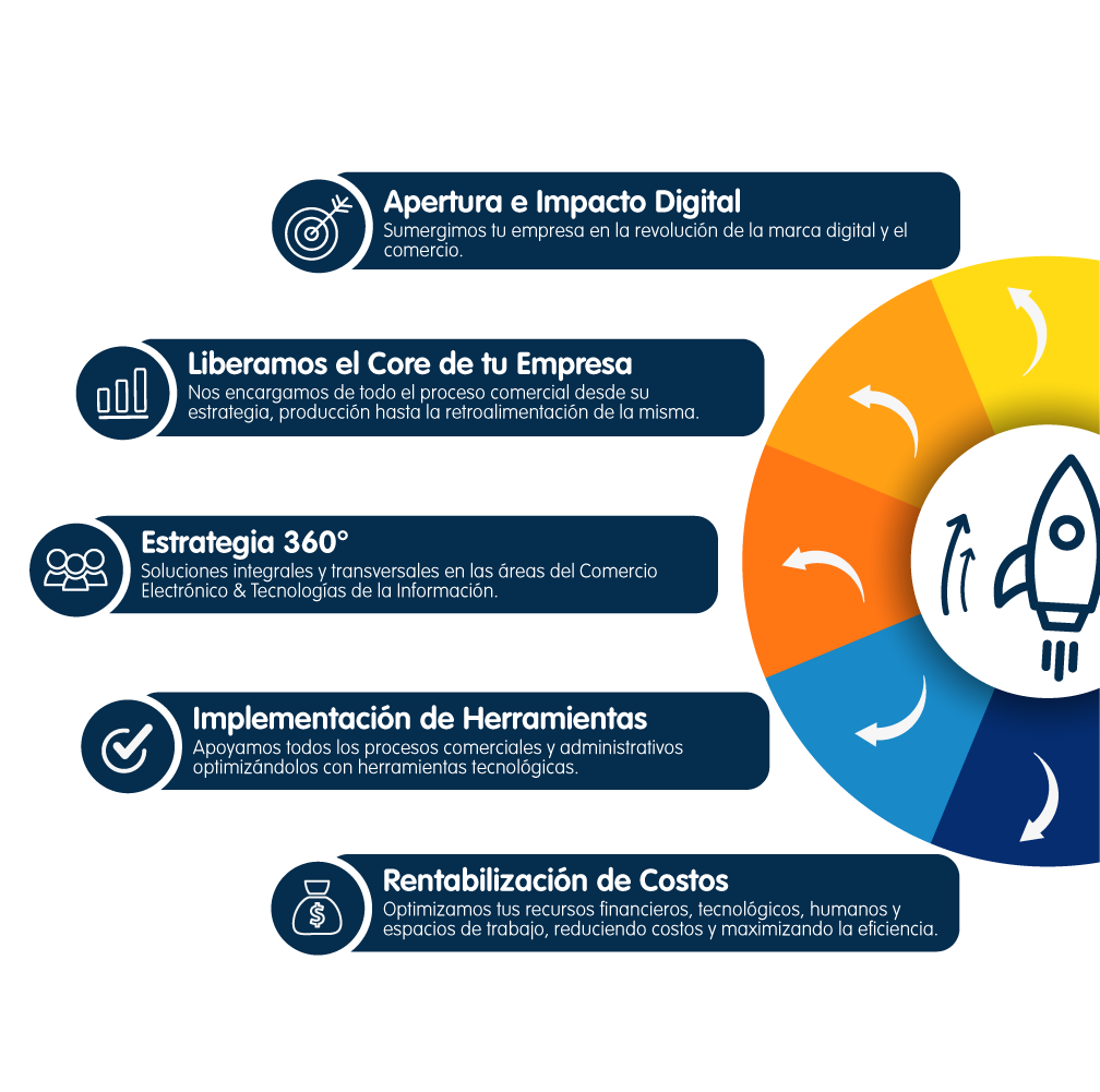 Somos un equipo de expertos en Comercio Electrónico y Tecnologías de la Información, brindando soluciones completas y personalizadas. Implementamos un Departamento Transversal que libera