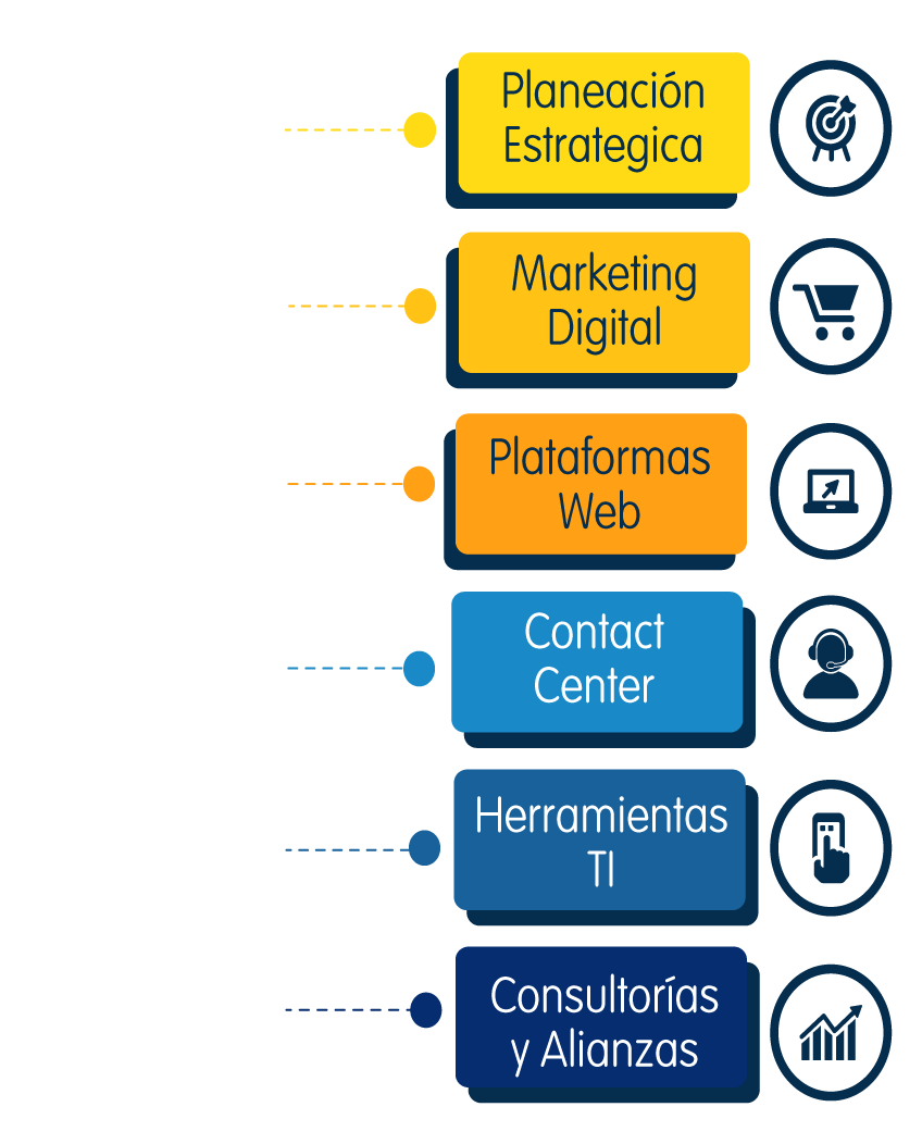 Nos convertimos en un Departamento Transversal donde apoyamos los procesos comerciales y tecnológicos de tu empresa optimizando los recursos mejorando la rentabilidad.